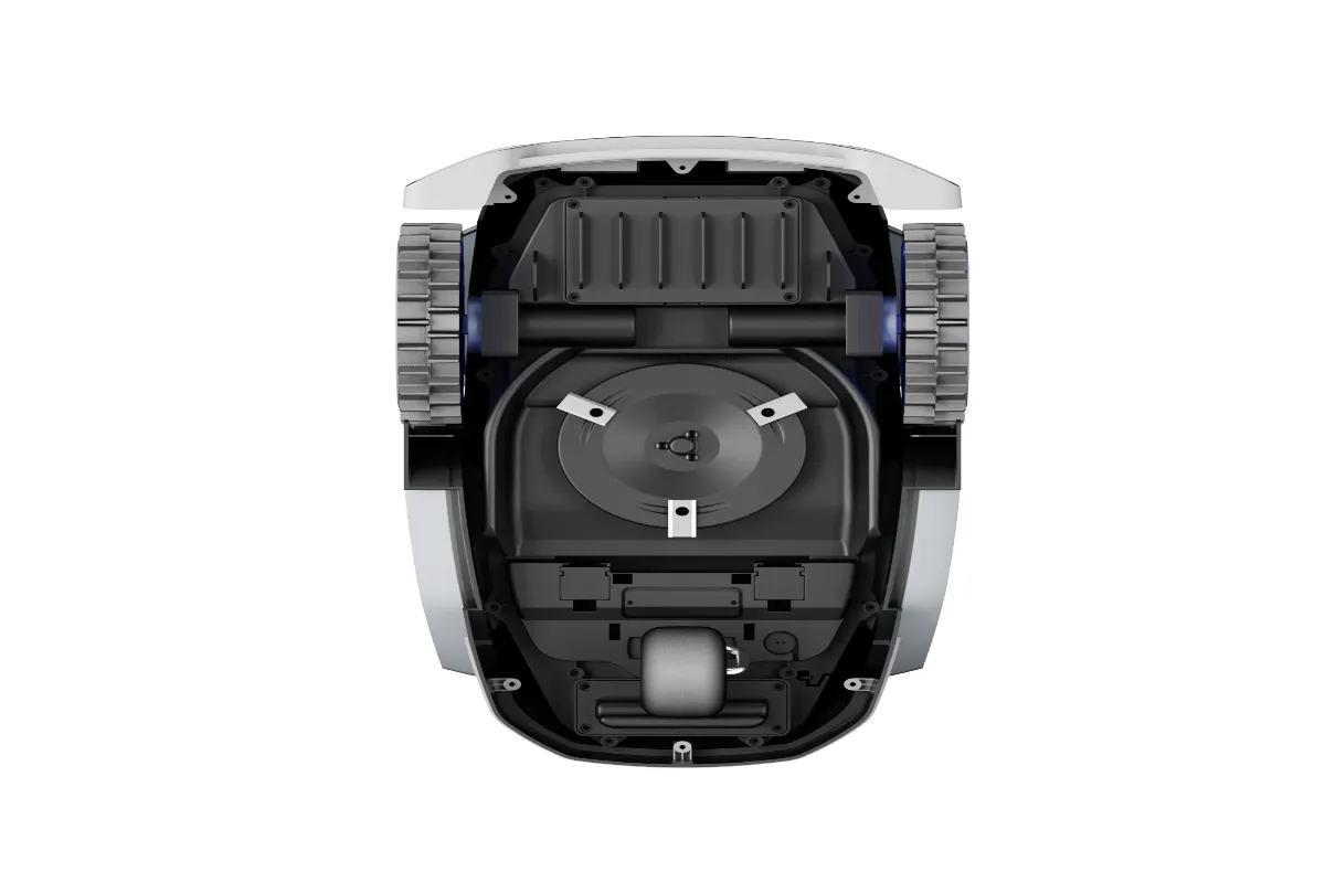 Après la tonte, le nettoyage est très simple. Un rapide coup de jet d’eau (il est étanche IPX5) suffit pour éliminer les résidus, et le dessous reste relativement propre grâce à la conception surélevée du disque. C’est le genre d’entretien qui prend deux minutes et ne nécessite pas de se salir les mains.